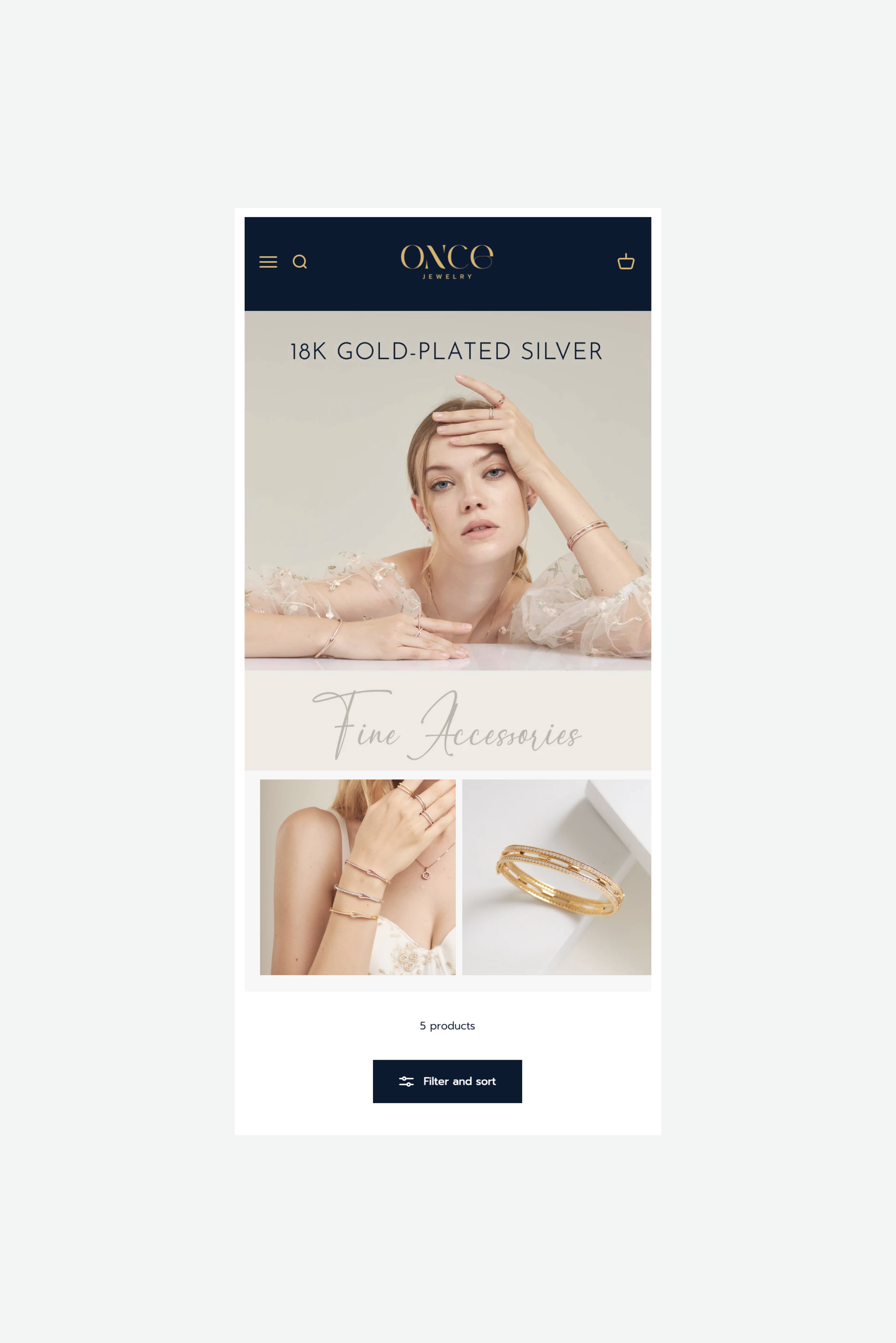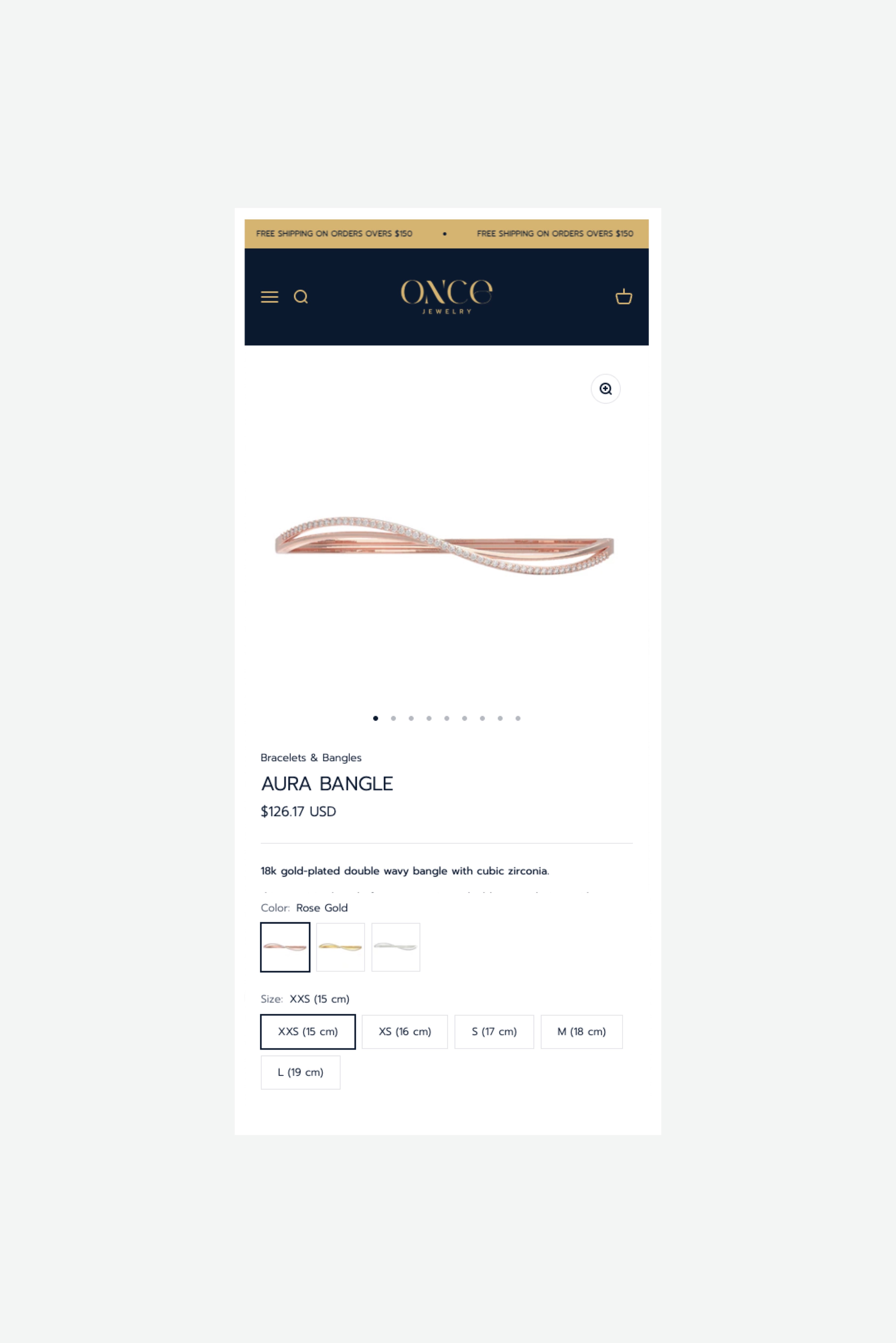 Once is een wereldwijde marktplaats voor exclusieve, op maat gemaakte sieraden, ontworpen om high-end boetieksieraden te verbinden met een internationaal publiek. Gelanceerd tijdens de lockdownperiode, bediende het platform de groeiende vraag naar premium, handgemaakte sieraden van klanten die thuis winkelden. De uitdaging was een uniforme etalage te presenteren met een naadloze online winkelervaring — van productpresentatie tot betalingen, invoerrechten en express wereldwijde verzending.