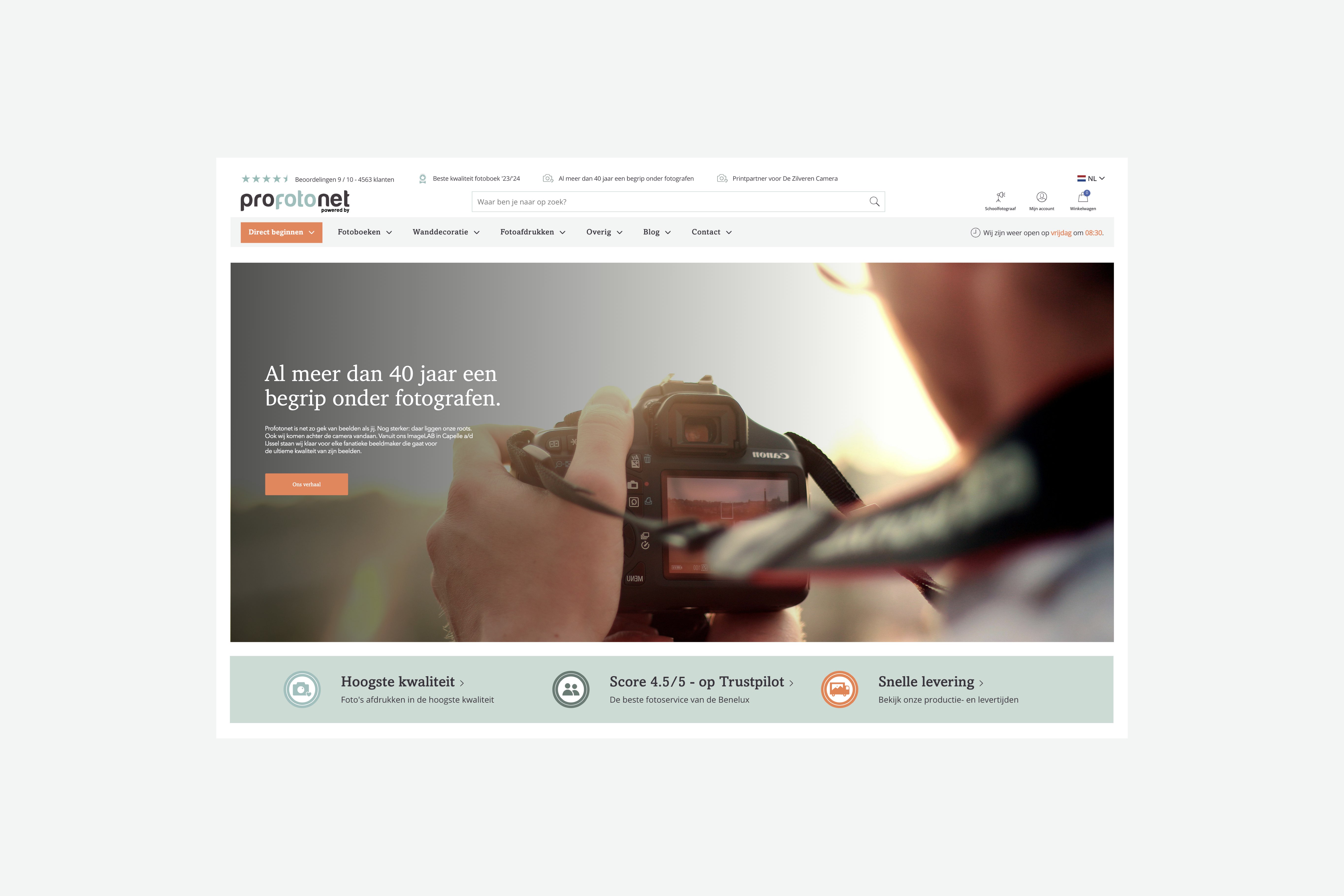 Profotonet is een full‑service fotovaklab gevestigd in Capelle aan den IJssel. Ze specialiseren zich in hoogwaardige fotoafdrukken, wanddecoratie, fotoboeken en andere fotoproducten — allemaal met vakmanschap, aandacht voor kleur en materiaal en snelle levering. Voor Profotonet stond de uitdaging centraal om een commercepl-atform te kiezen dat complexe productconfiguraties aankon, operationeel paste én binnen hun budget bleef.